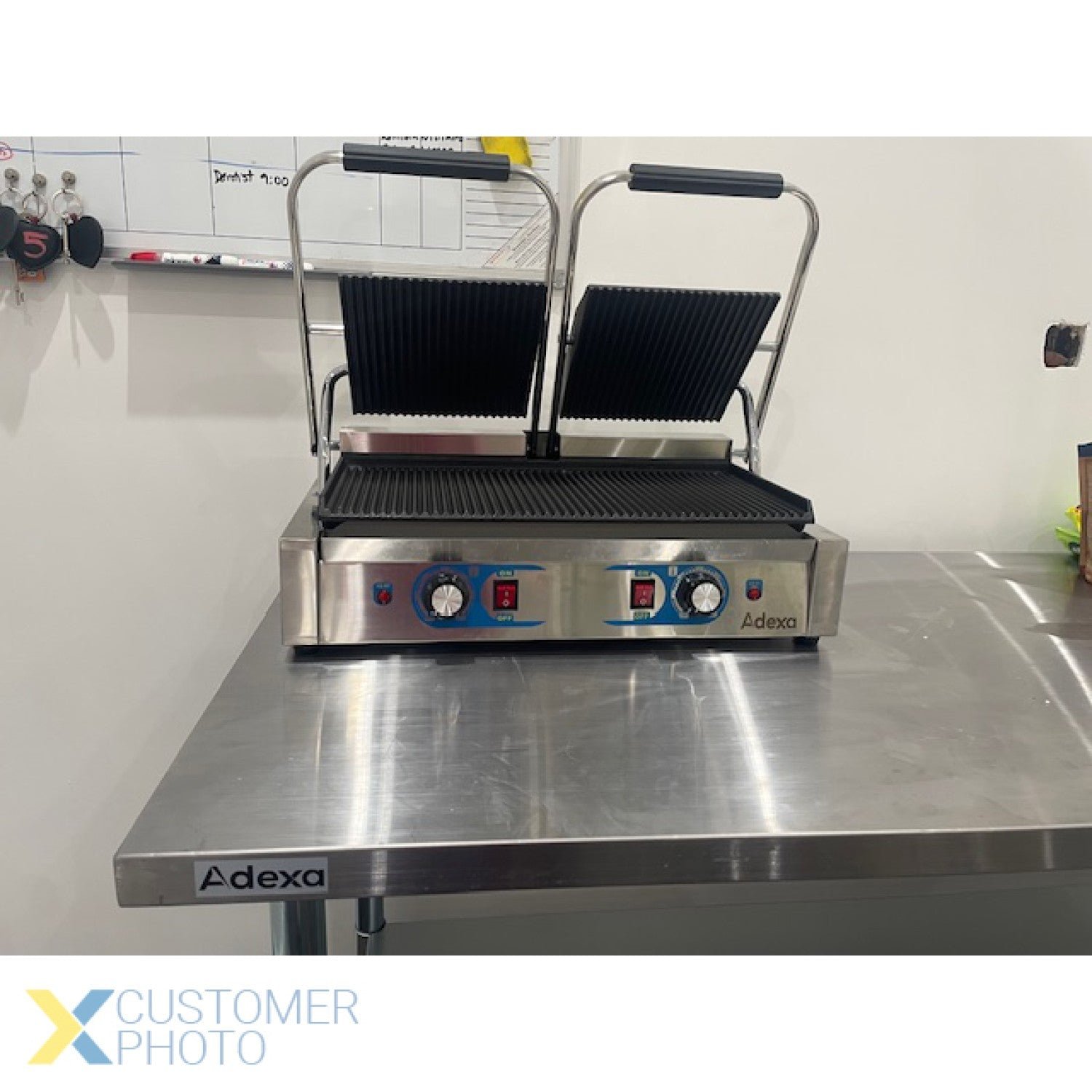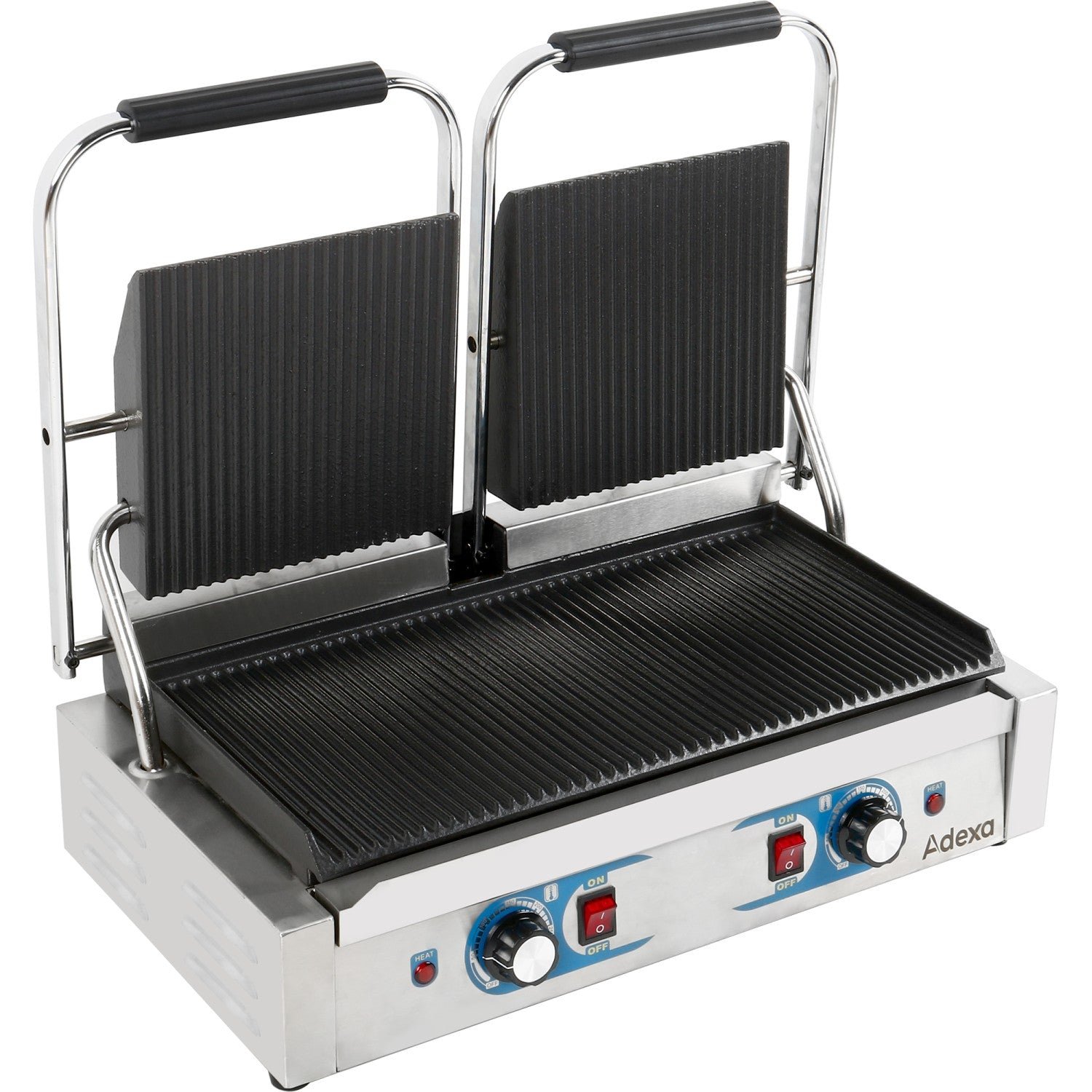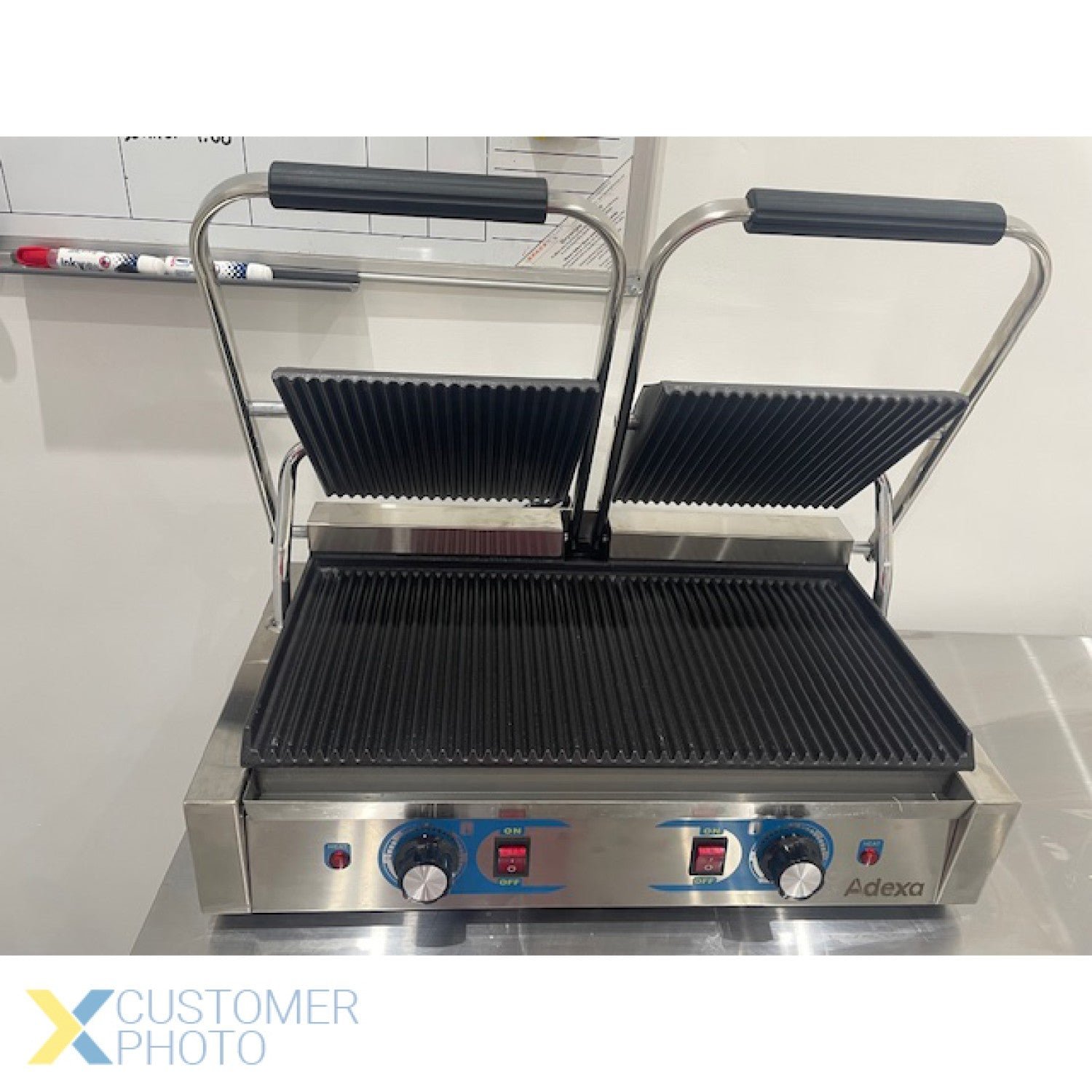Heavy Duty Twin Panini Contact grill Dual Zone 3.6kW Ribbed | Adexa MLP813